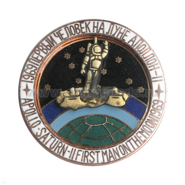 Значок мет. Первый человек на Луне Аполлон-2 (серия Космос) гор. эм.