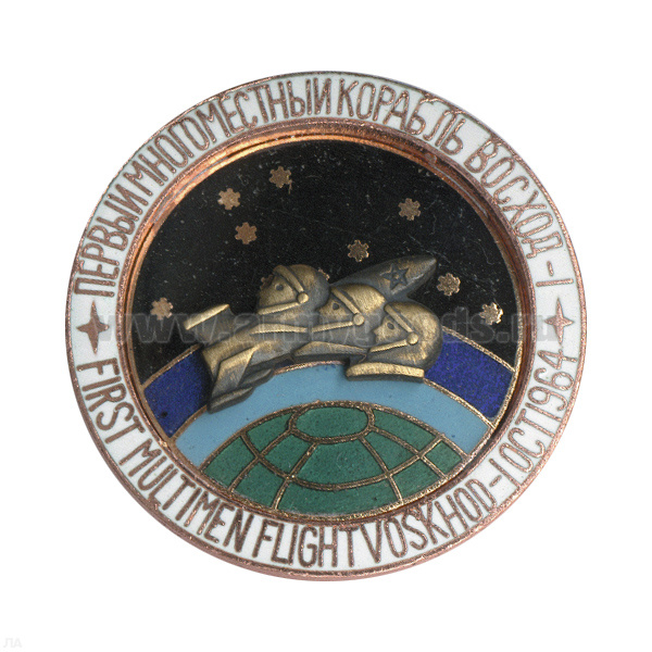 Значок мет. Первый многоместный корабль Восход-1 (серия Космос) гор. эм.
