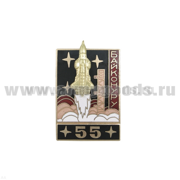 Значок мет. Байконуру 55 (серия Байконур Энергия-Буран) черный, гор. эм.