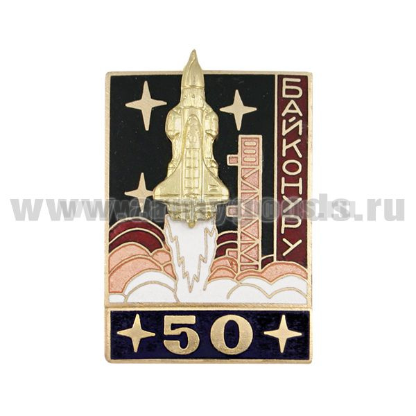 Значок мет. Байконуру 50 (серия Байконур Энергия-Буран) черный, гор. эм.