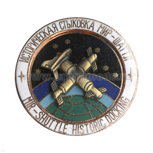 Значок мет. Историческая стыковка Мир-Шаттл (серия Космос) гор. эм.