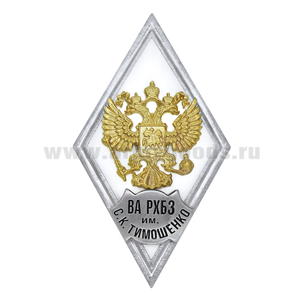 Значок мет. ВА РХБЗ им С.К. Тимошенко (ромб РФ белый, орел без щитка) гор.эм.