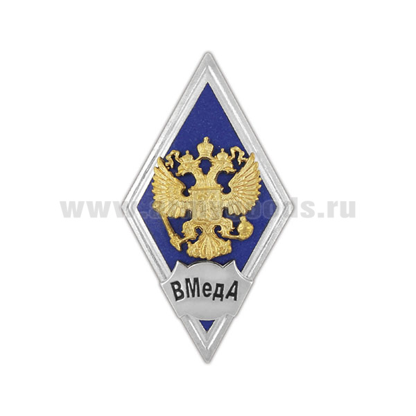 Значок мет. ВМедА (ромб РФ, орел без щитка) гор.эм.