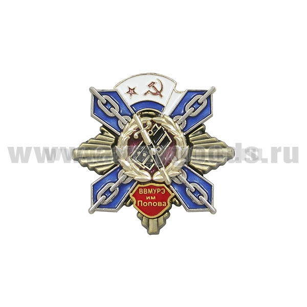Значок мет. ВВМУРЭ им. Попова (крест с лучами)