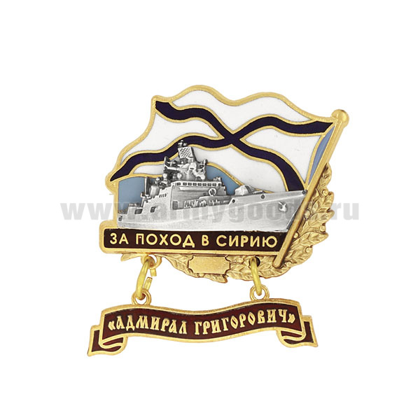 Значок мет. За поход в Сирию (флажок андр. с подвеской) "Адмирал Григорович"