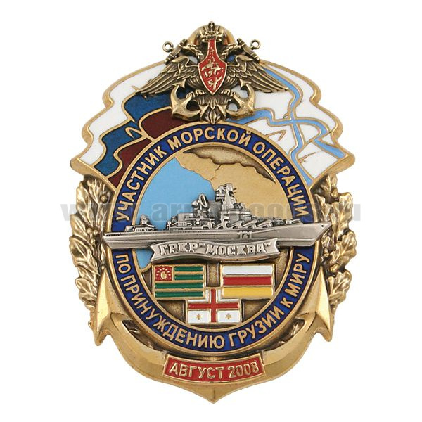 Значок мет. Участник морской операции по принуждению Грузии к миру ГРКР "Москва" август 2008