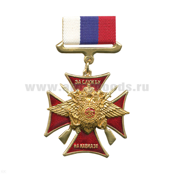 Медаль За службу на Кавказе (орел МВД с винтовками) (на планке - лента РФ)