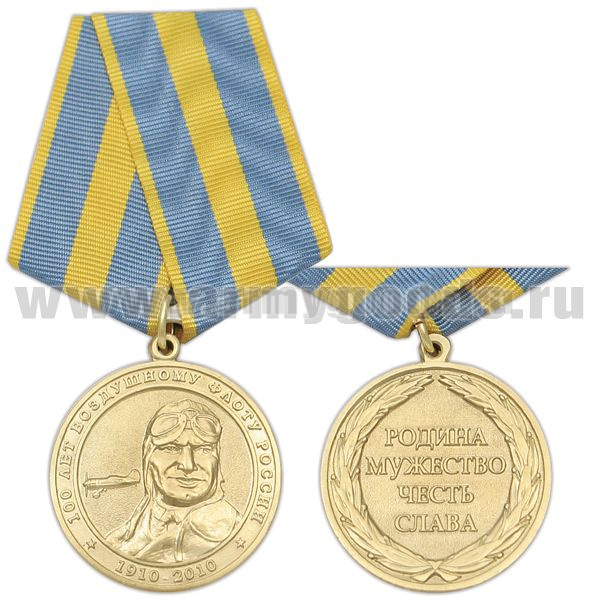 Медаль 100 лет воздушному флоту России 1910-2010 (Родина Мужество Честь Слава) с портретом Чкалова