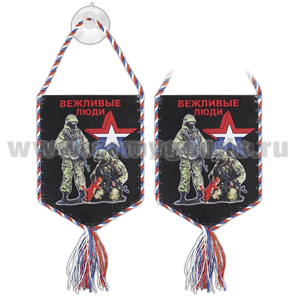 Вымпел шелкография автомоб. на присоске Вежливые люди (пятиуг.)