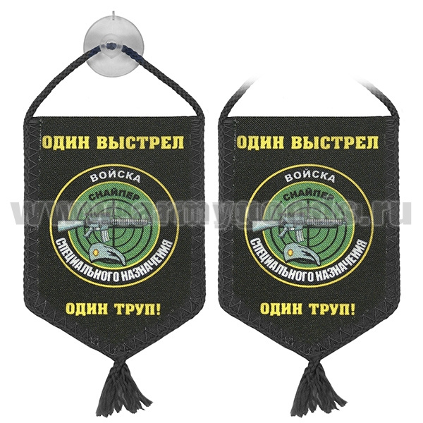 Вымпел шелкография автомоб. на присоске Войска спец. назначения (Один выстрел - один труп!) пятиуг.