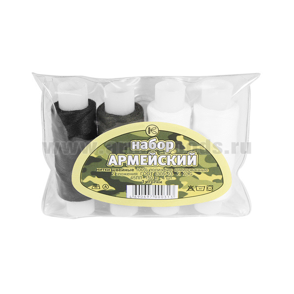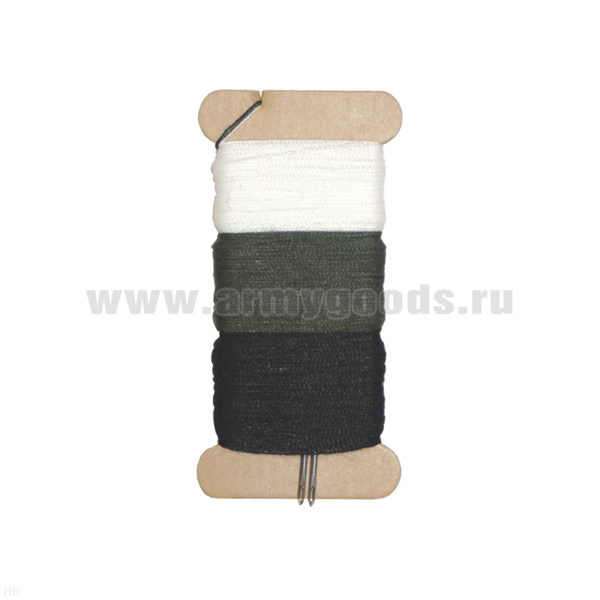 Набор Армейский МО (катушки ниток: черная, оливковая, 2 белых + 2 иголки)