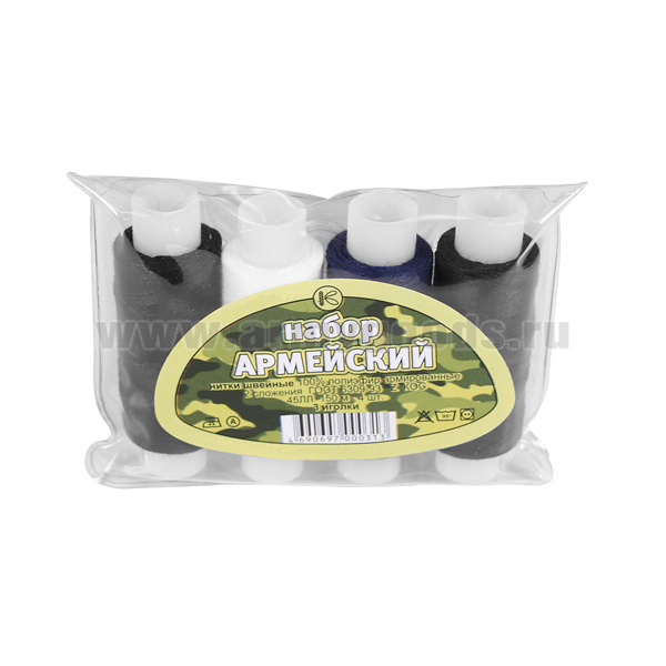 Набор Армейский ВМФ (катушки ниток: черная, белая, синяя, темно-синяя + 2 иголки)