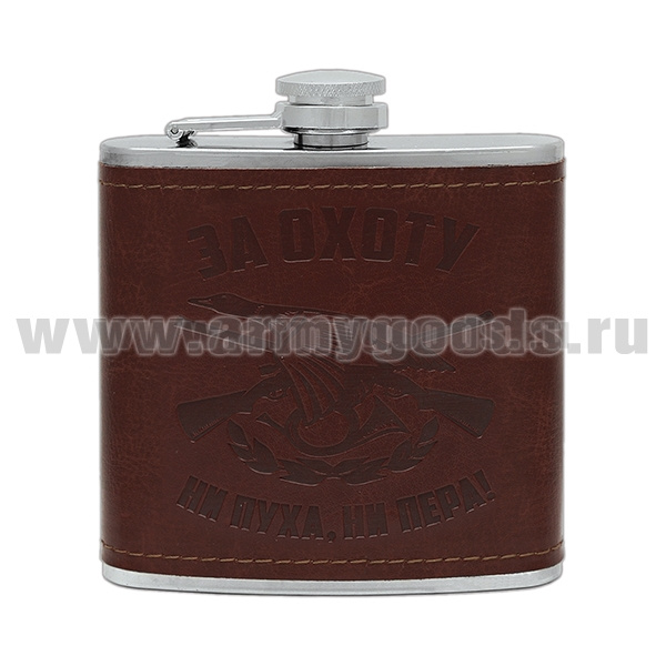 Фляга (нерж. сталь) с тиснением на коже За охоту Ни пуха, ни пера! (6 oz (180 мл)