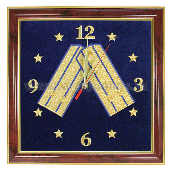 Часы подарочные вышитые на бархате в багетной рамке 35х35 см (Полковник ФСБ)