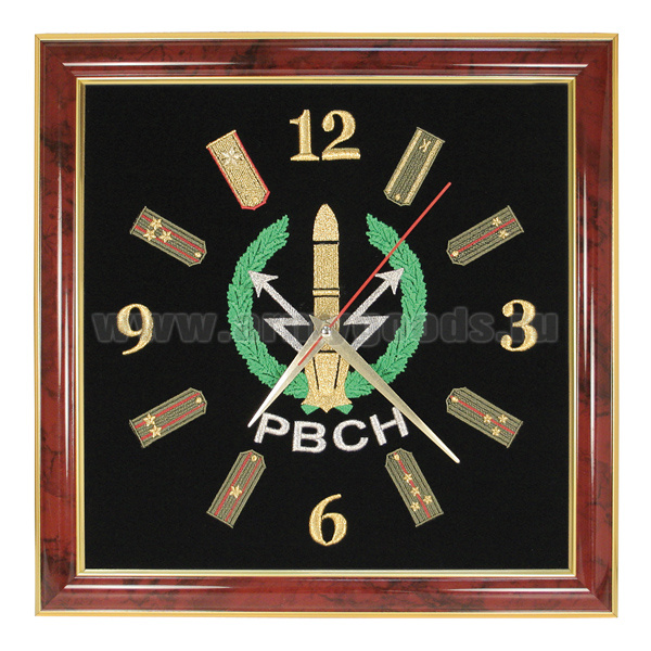 Часы подарочные вышитые на бархате в багетной рамке 35х35 см (РВСН)