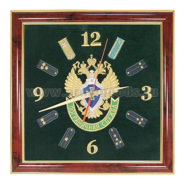 Часы подарочные вышитые на бархате в багетной рамке 35х35 см (ПС)