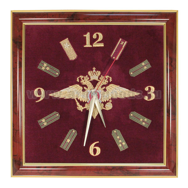 Часы подарочные вышитые на бархате в багетной рамке 35х35 см (ВВ; орел МВД)