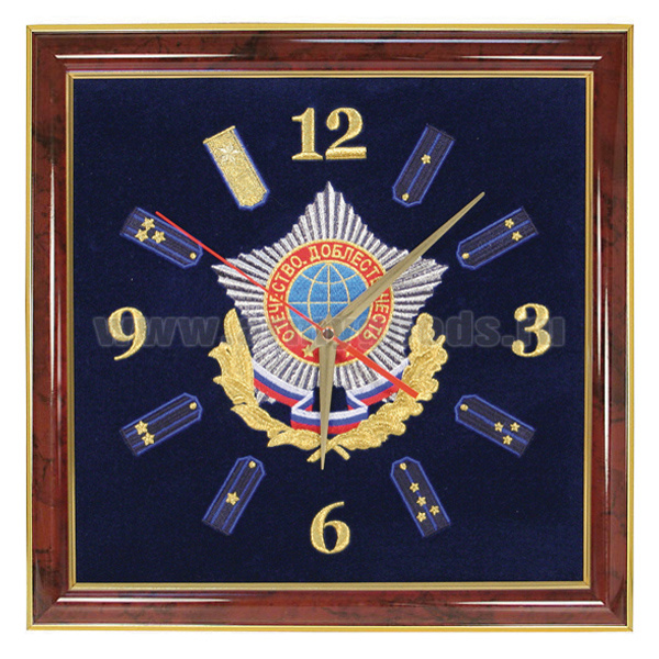 Часы подарочные вышитые на бархате в багетной рамке 35х35 см (СВР Отечество Доблесть Честь)