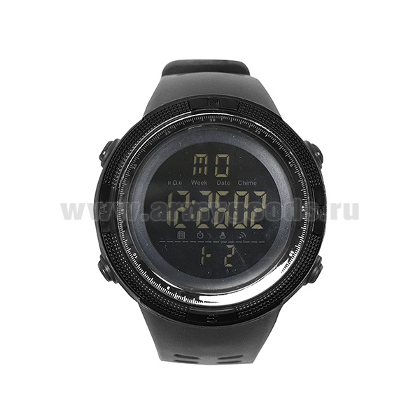 Часы наручные электронные (водонепроницаемые 5 атм) с полимерным формованным ремешком черные/кмф черн. по наличию на складе