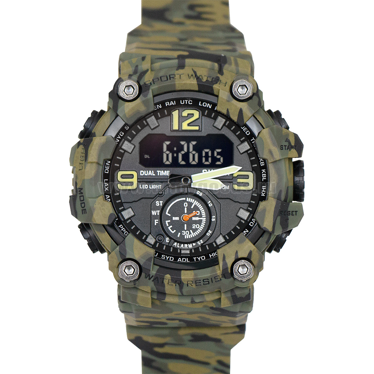 Часы наручные кварцевые спортивные (водонепроницаемые 5 атм) с полимерным формованным ремешком (цвета в асс-те)
