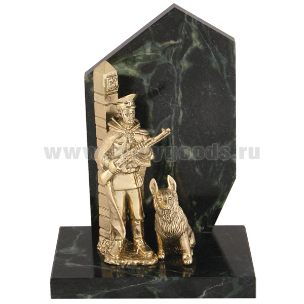 Статуэтка (литье бронза, камень змеевик) Пограничник с собакой на фоне стены