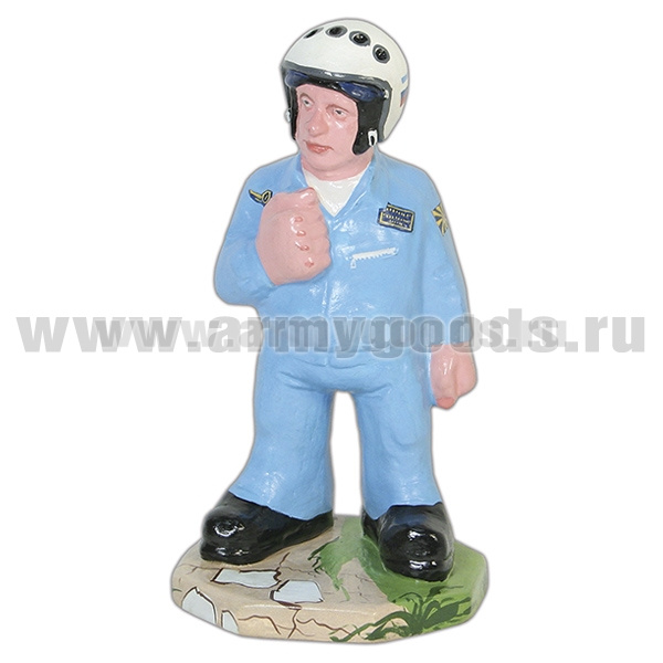 Фигурка гипсовая Летчик в гермошлеме в синем комбинезоне
