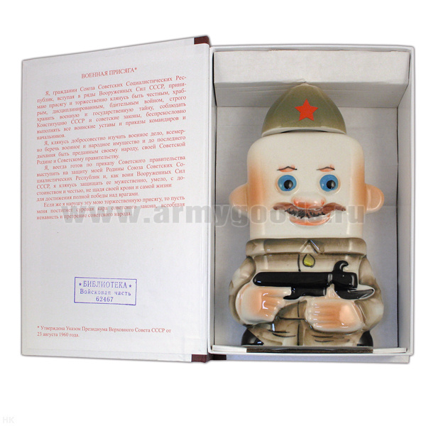 Фляга фарф. (0,25 л) в книжке-обманке Солдат с автоматом