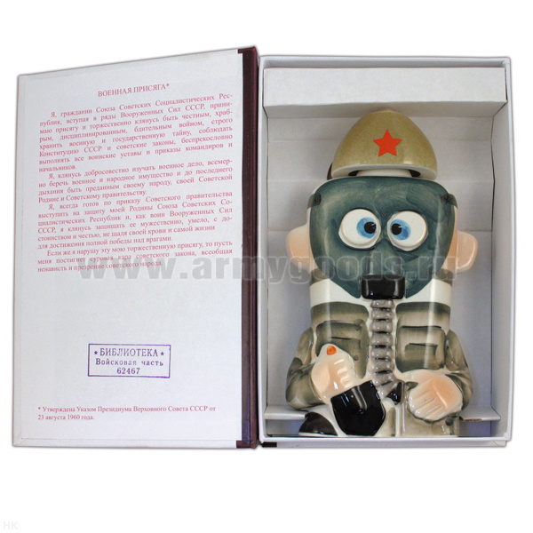 Фляга фарф. (0,25 л) в книжке-обманке Солдат в противогазе
