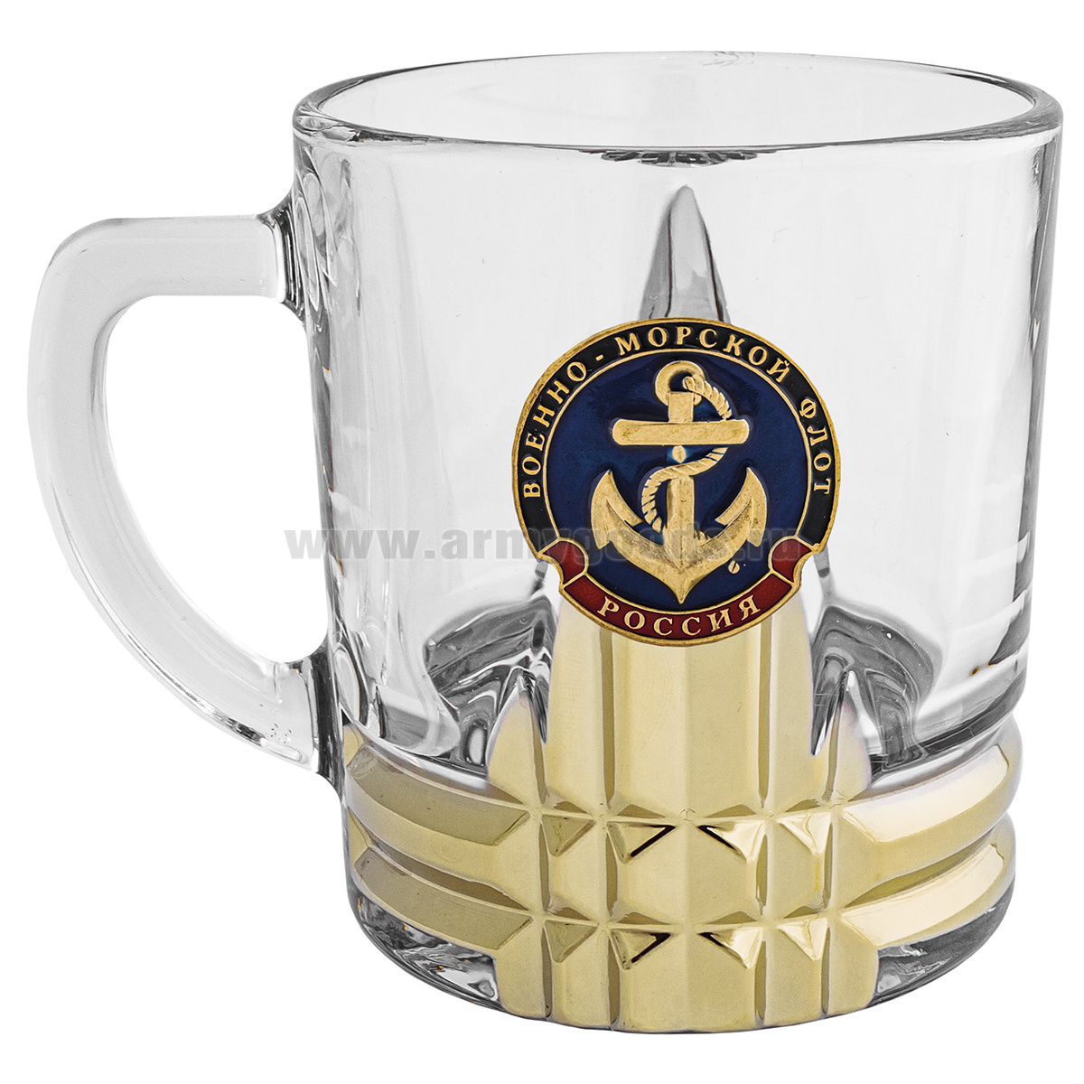 Кружка стекло (0,25 л) с металлизированным напылением и мет накладкой ВМФ