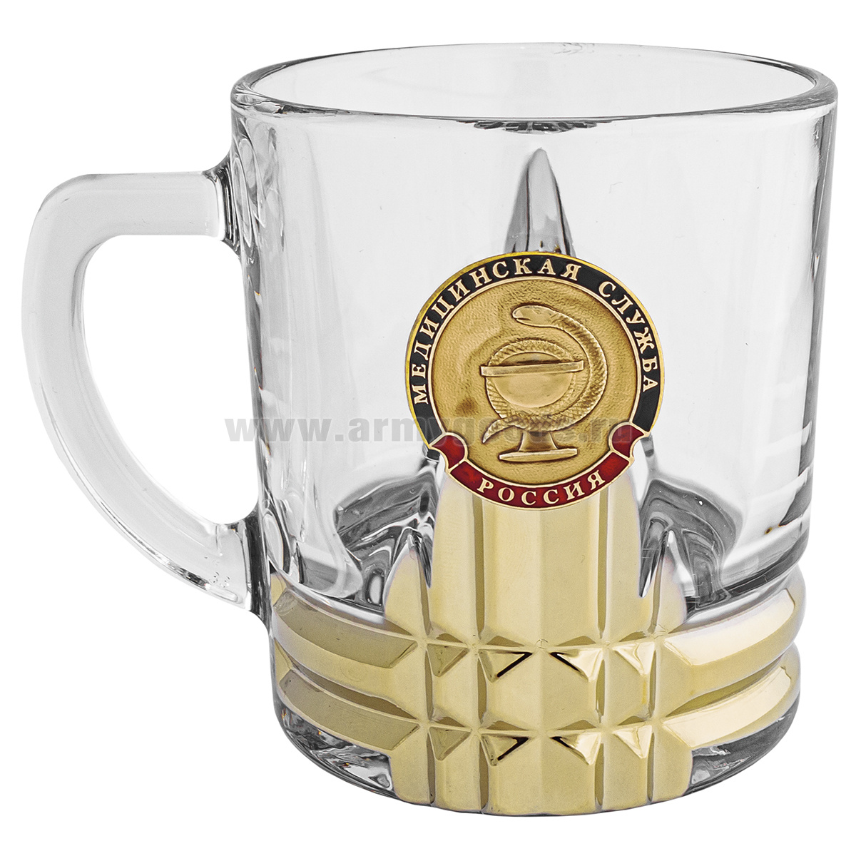 Кружка стекло (0,25 л) с металлизированным напылением и мет накладкой Медицинская служба