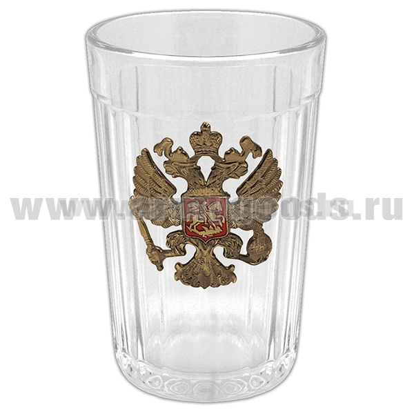 Стакан стеклянный граненый с накладкой Орел РФ (зол/серебр по наличию)