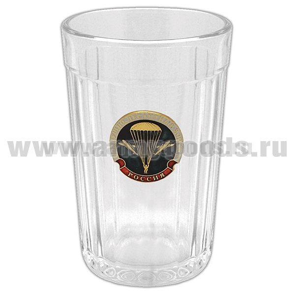 Стакан стеклянный граненый с накладкой ВДВ (эмбл. нов/обр)