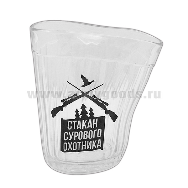 Стакан стеклянный граненый "пьяный" с надписью "Стакан сурового охотника"
