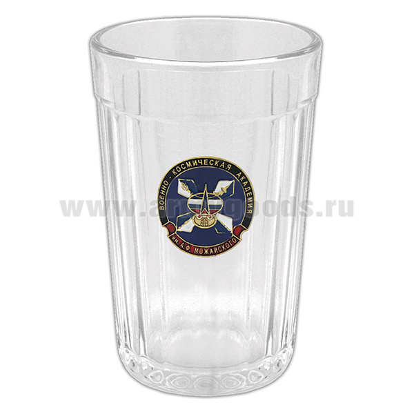 Стакан стеклянный граненый с накладкой Военно-космическая академия имени А.Ф. Можайского