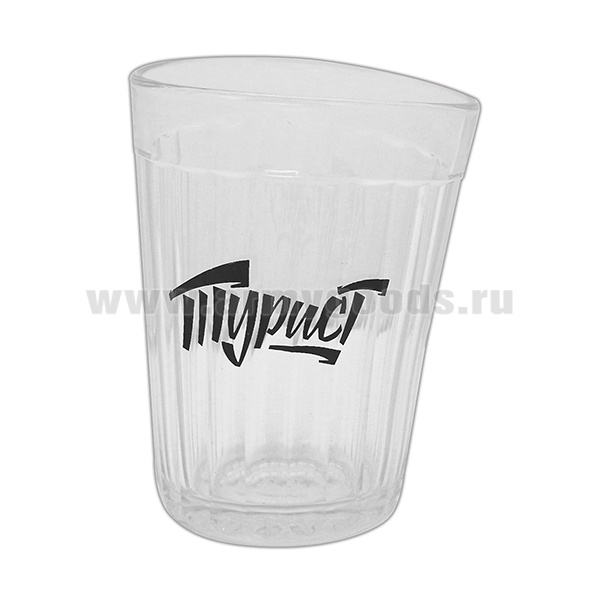 Стакан стеклянный граненый "пьяный" с надписью "Турист"