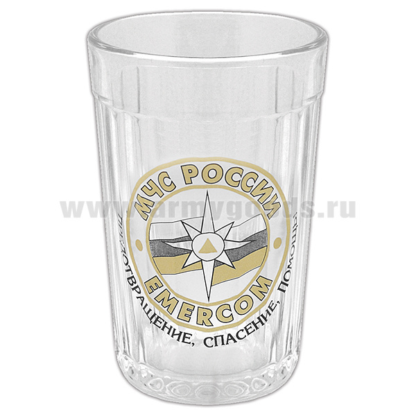 Стакан стеклянный граненый МЧС России Emercom (Предотвращение, спасение, помощь)