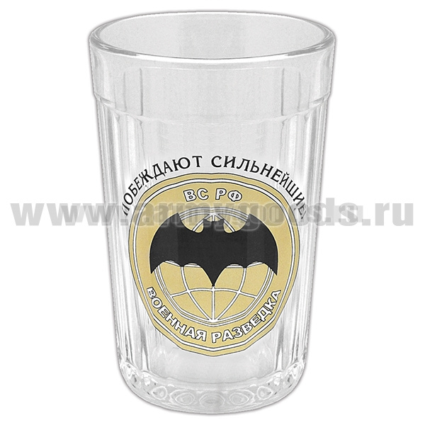 Стакан стеклянный граненый Военная разведка ВС РФ (Побеждают сильнейшие!)