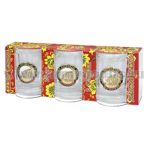 Стопки стеклянные (3x50 мл) с накладками Первый космонавт Земли Ю.А. Гагарин