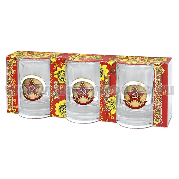 Стопки стеклянные (3x50 мл) с накладками Звезда СА