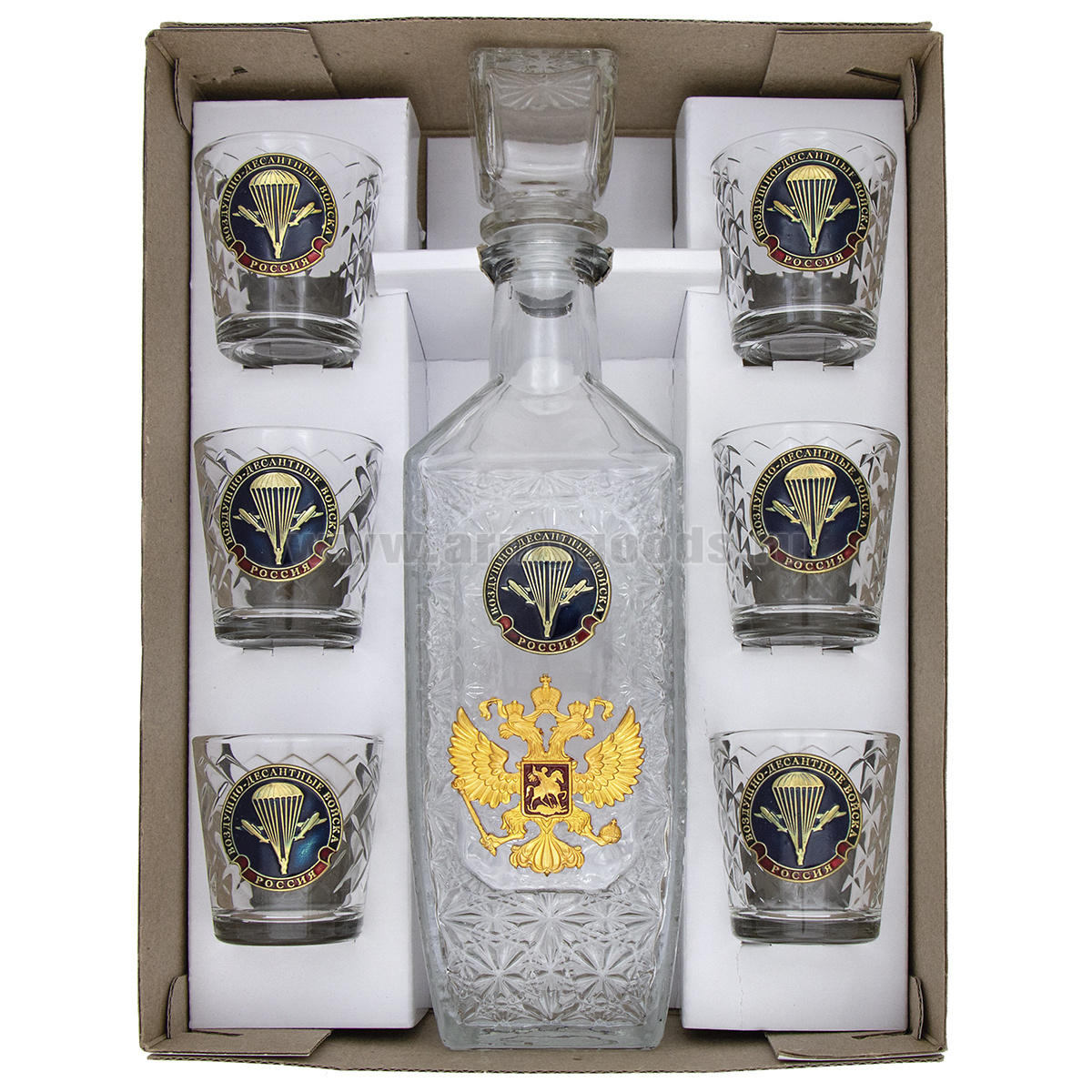 Набор подарочный стеклянный Штоф (0,5 л) и 6 стопок (50 мл) с мет. накладками ВДВ нов/обр
