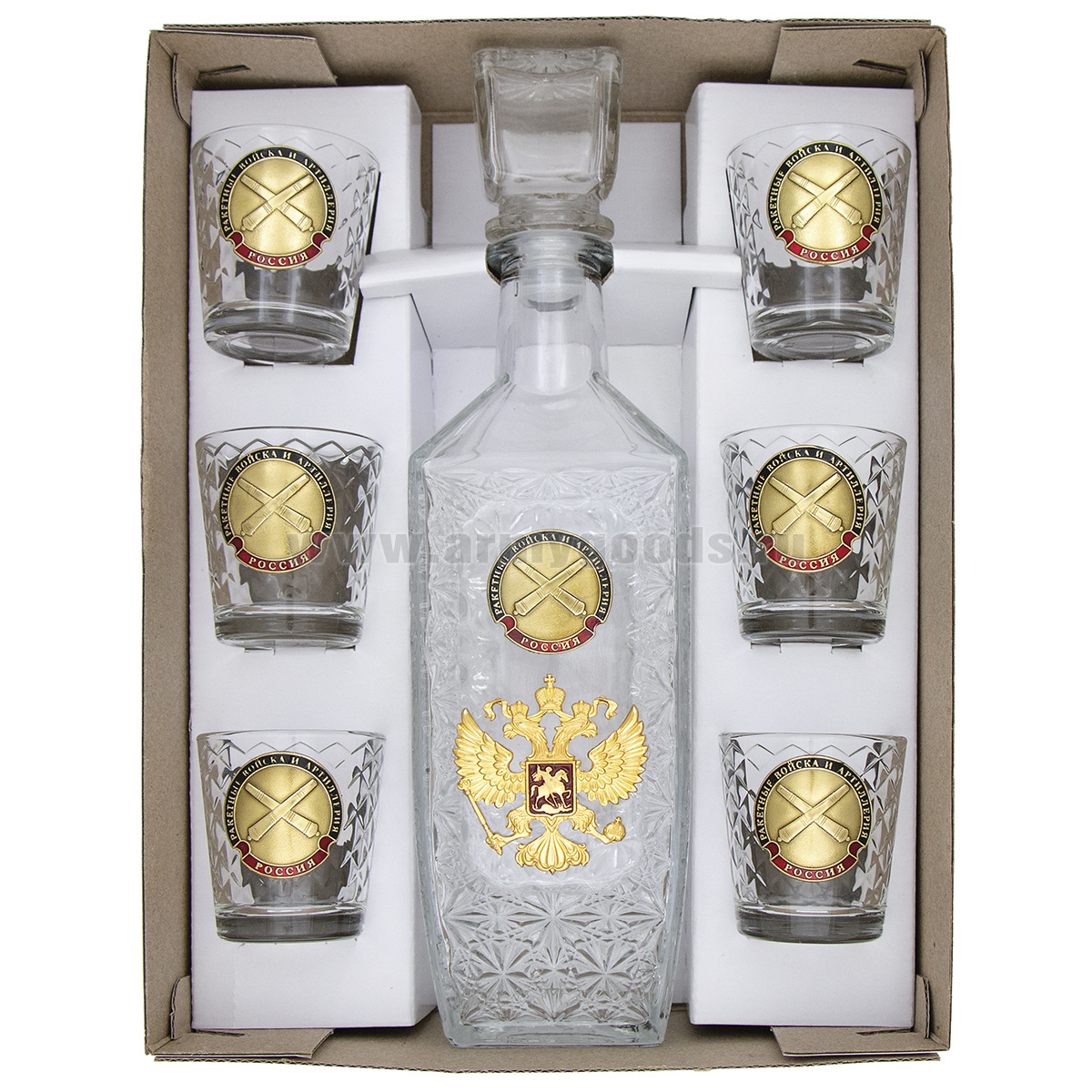 Набор подарочный стеклянный Штоф (0,5 л) и 6 стопок (50 мл) с мет. накладками РВиА
