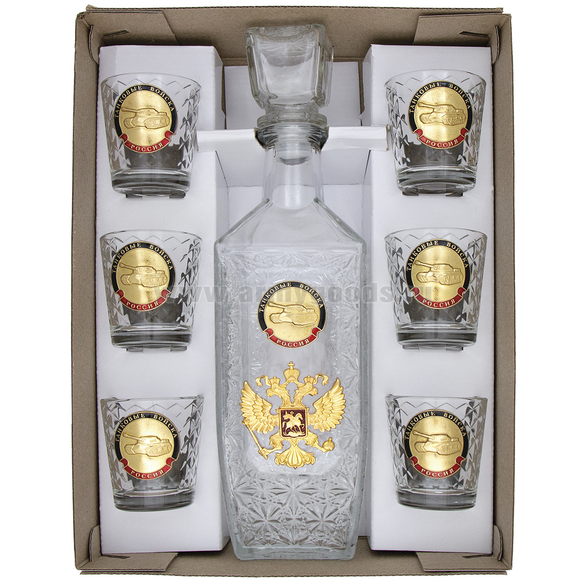 Набор подарочный стеклянный Штоф (0,5 л) и 6 стопок (50 мл) с мет. накладками Танковые войска