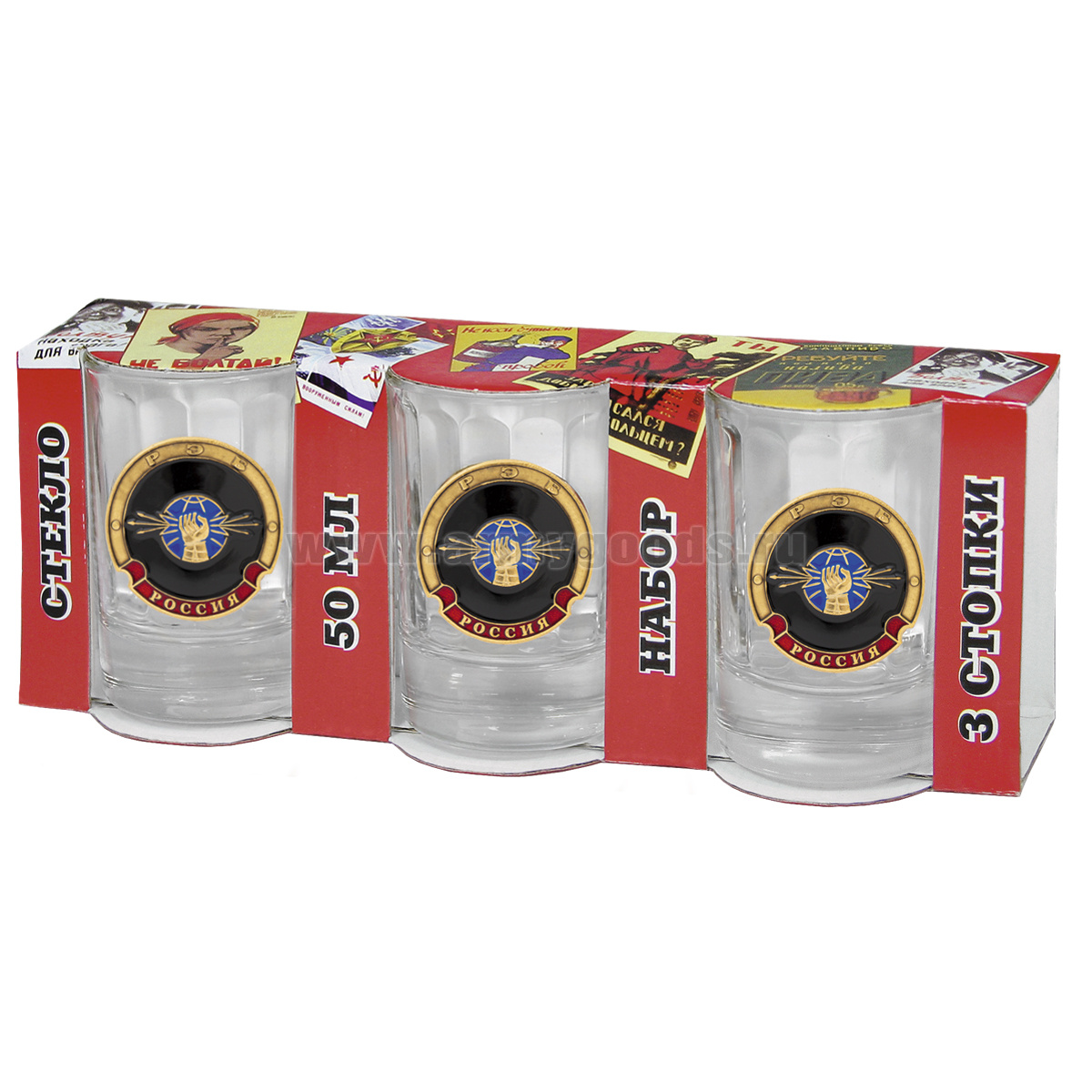 Стопки стеклянные (3x50 мл) с накладками РЭБ (эмблема)