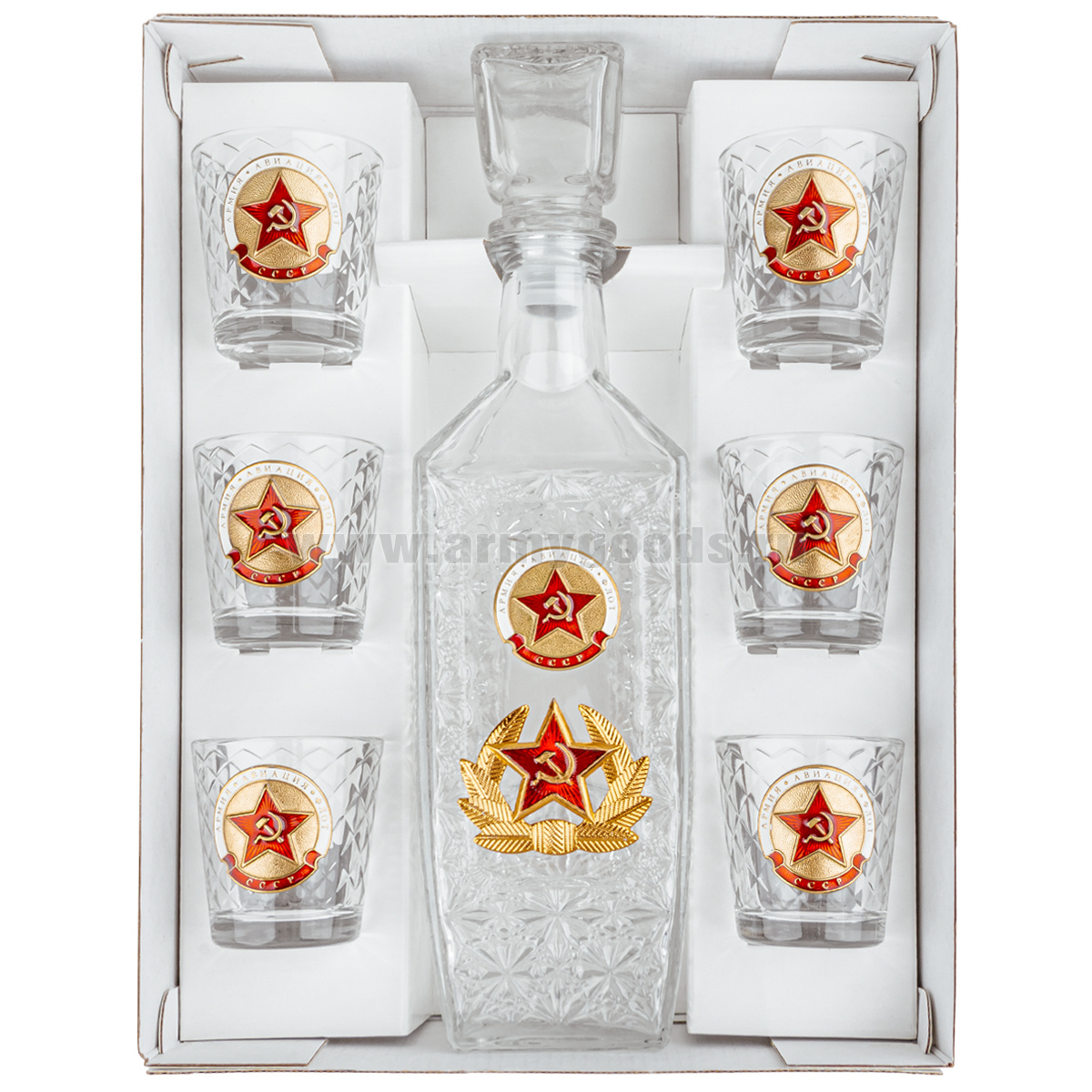 Набор подарочный стеклянный Штоф (0,5 л) и 6 стопок (50 мл) с мет. накладками Звезда СА (армия, авиация, флот)