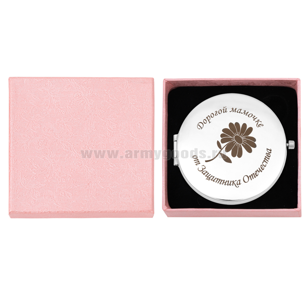 Зеркало карманное с лазерной гравировкой Дорогой мамочке от Защитника Отечества
