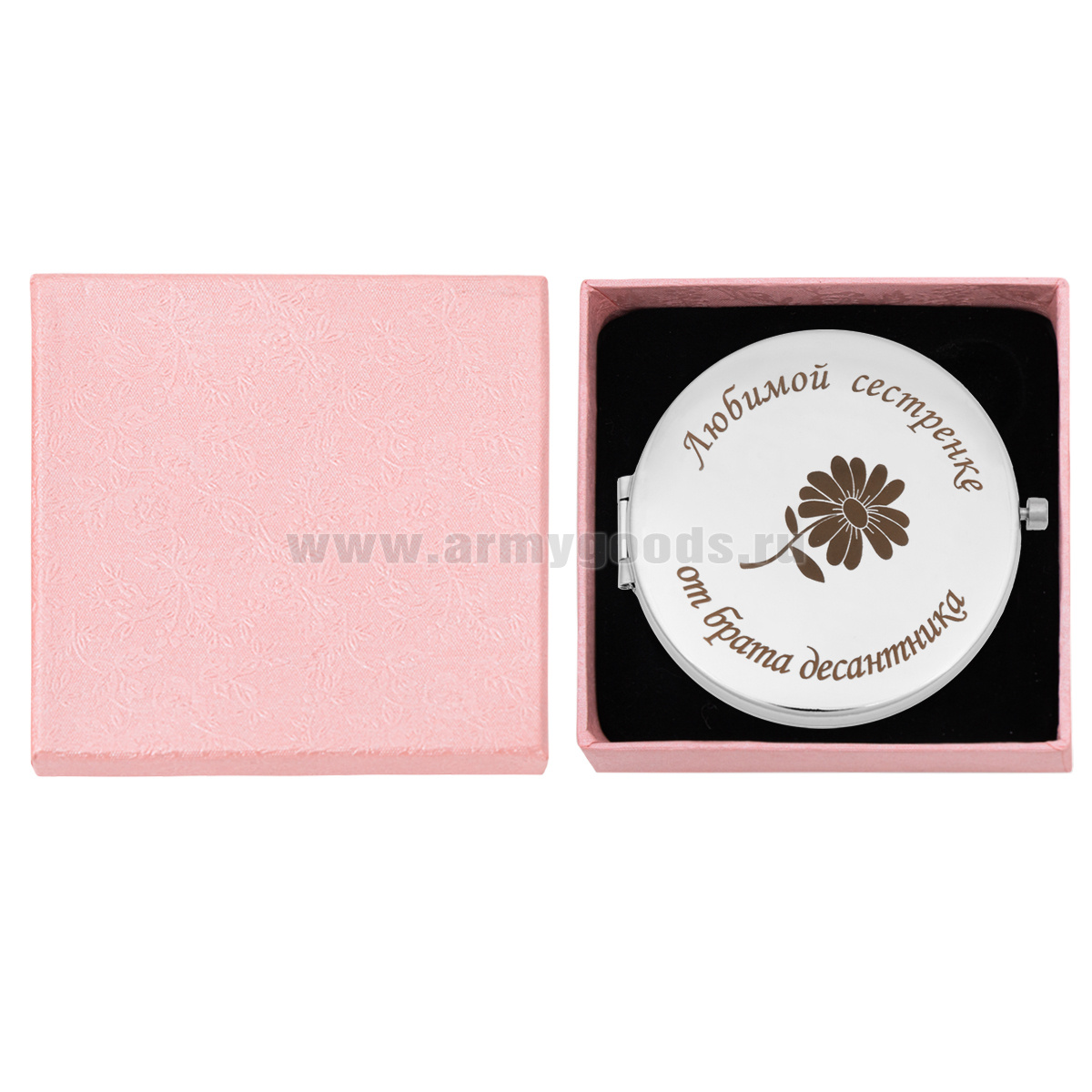 Зеркало карманное с лазерной гравировкой Любимой сестренке от брата десантника