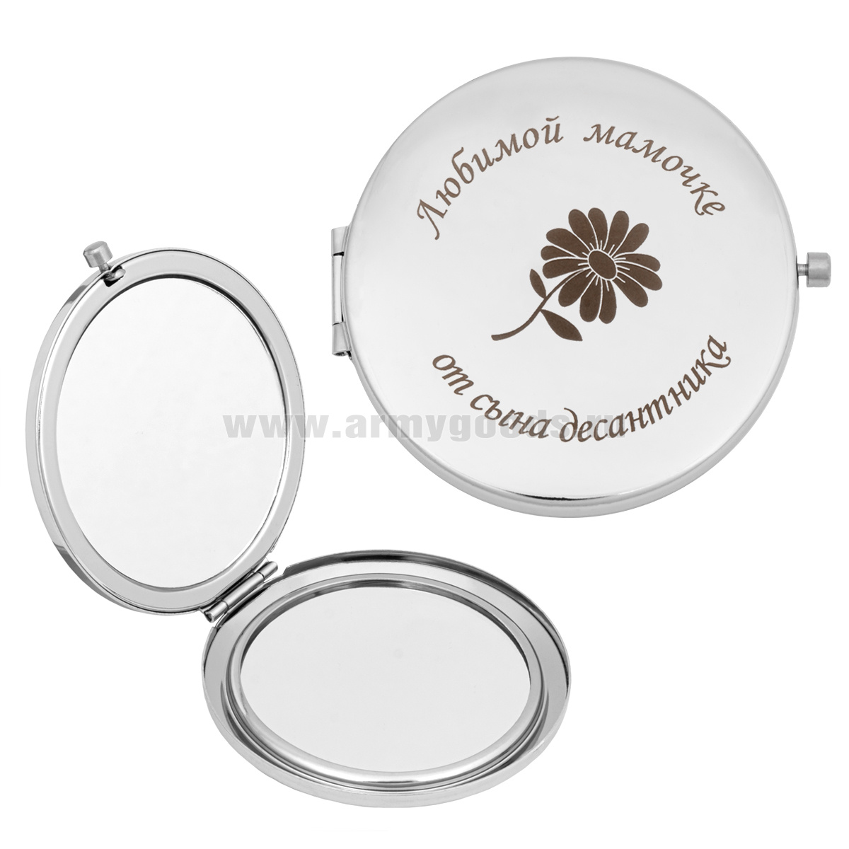 Зеркало карманное с лазерной гравировкой Любимой мамочке от сына десантника