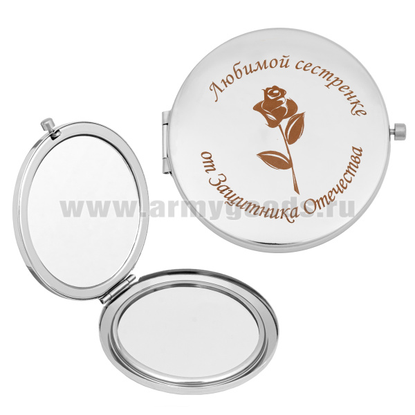Зеркало карманное с лазерной гравировкой Любимой сестренке от Защитника Отечества