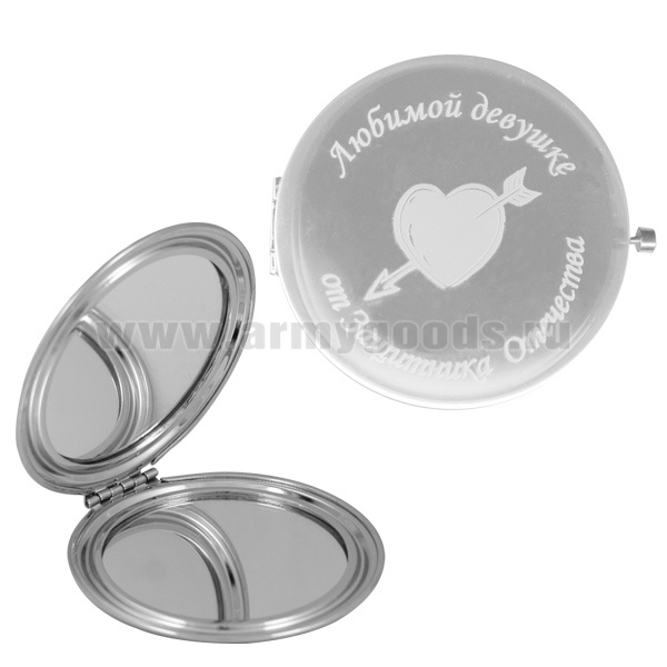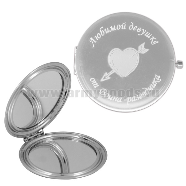 Зеркало карманное с лазерной гравировкой Любимой девушке от Воина-разведчика