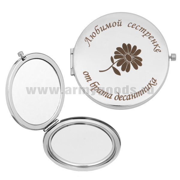 Зеркало карманное с лазерной гравировкой Любимой сестренке от брата десантника